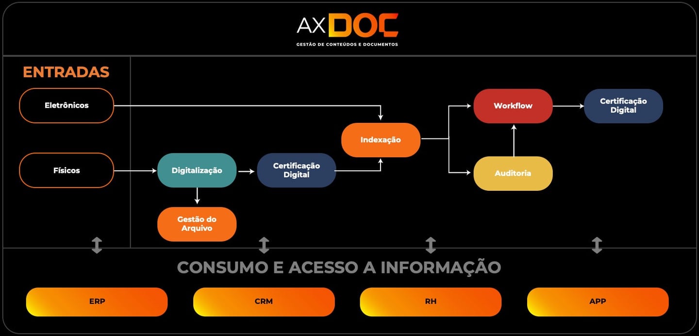 Com o Axdoc, você pode digitalizar, armazenar e localizar documentos online, garantindo um fluxo de trabalho otimizado e seguro, ideal para empresas de todos os tamanhos e segmentos.